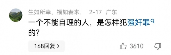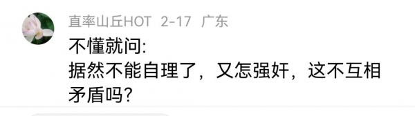 一位来自广东的网友发出了灵魂拷问,既然这位93岁的老人已经生活不能自理了,那当初又怎样犯下强奸的罪行呢?这难道不是前后矛盾吗?