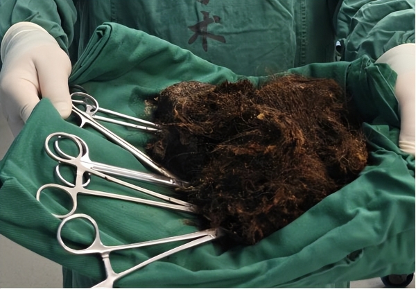 去年3月,浙江台州医院凌晨接诊了1名因腹痛就诊的5岁女孩。经医生询问,女孩妈妈说出一个特殊线索--孩子从小有吃自己头发的习惯。医生断定孩子长期吃头发导致了胃内毛发成团,这也是这次腹痛的原因。