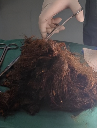 由于头发无法被胃液消化,也很难把它们排出去。在胃酸的作用下,头发与食物残渣及其他胃内容物混合,像滚雪球似的越变越大、越变越硬,逐渐形成坚硬的"胃石",在临床上称为"毛石症"。