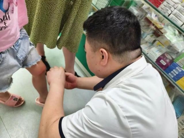 随后,记者在诊所见到了正在治疗的小女孩。小女孩今年5岁,膝盖已经肿了。她妈妈介绍,正在海里戏水,突然姑娘大喊腿疼,别人告诉后,她才得知是被海蜇蜇伤了。