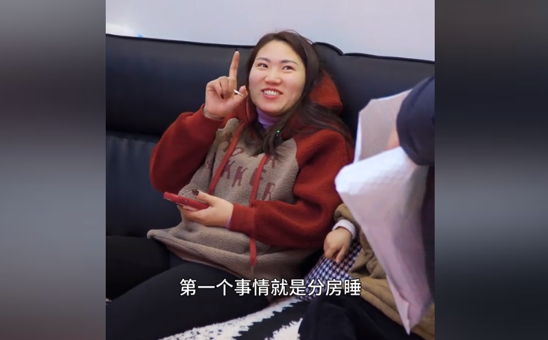 据视频显示,男子的老婆怀孕了,由于是第一次怀孕,不知道该注意些什么,就趁着姐姐到家里来做客的时候问姐姐需要注意什么,姐姐说第一个事情就是要分房睡,还说男子是新婚更要注意,顿时让人哭笑不得。