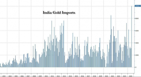 在这场"狂飙"的黄金行情中,有一个被市场"忽略"了的大买家:印度。在今年7月末大幅下调金银进口关税后,印度对黄金的需求飙升,8月份进口量增至140吨,是7月进口量的3倍。9月,虽然印度的黄金进口量环比有所下滑,但彭博社报道称,随着印度教重要节日"排灯节"和婚礼季的到来,该国未来几个月对黄金的需求或将持续。