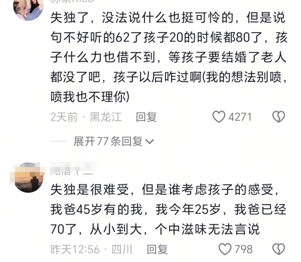 然而另一部分网友却在同情之余,认为她极度自私。生育虽然是女人的基本权利,但是也要根据客观情况而定。她不顾自身身体状况,冒险生孩子。等到孩子成年以后,她和的老伴已经80岁了,根本无力抚养孩子,孩子的未来承担着巨大的负担。