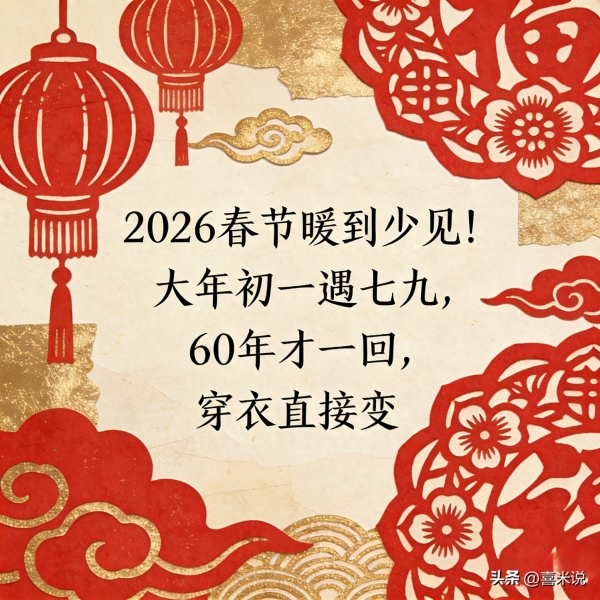2026年过年真要打破常规了!大年初一(2月17日)正好落在"七九"第五天,这可是老辈人活了大半辈子都少见的事儿。按老祖宗传的数九规矩,七九早过了最冷的时候,再加上权威气候预测,这个春节大概率暖到不用裹厚棉袄,不管是走亲访友还是出门游玩,都能舒舒服服过个团圆年。今天就用大白话把这事儿说透,再给大家讲讲南北该怎么穿、为啥这情况这么罕见。