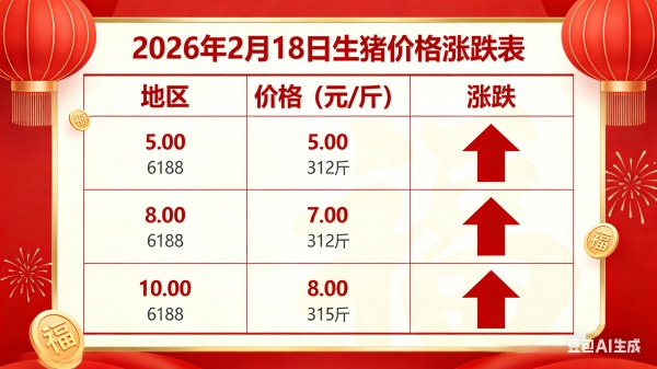 新年新气象,猪价开年涨,给养猪行业带来信心。2026年2月18日的生猪行情,既是节日红利的体现,也是市场供需调整的结果。希望各位养猪朋友保持平常心,科学养殖、理性出栏,抓住节日行情红利,新一年养殖顺利、收益满满。