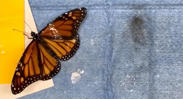 这位彪形大汉非常心细,马上就发现了这只帝王蝶,他知道帝王蝶的现状,于是非常好心地将其送到了纽约州史密斯镇的甜蔷薇自然中心。他曾在媒体报道上看到这个中心正在研究帝王蝶,所以才会做出这个决定。