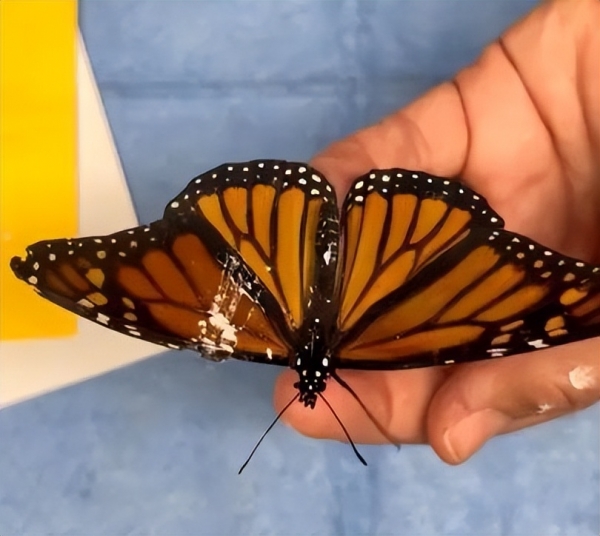 当然也不是说蝴蝶的手术就简单了,这个手术是非常艰难的,因为帝王蝶实在太脆弱,稍微不小心点,这只帝王蝶很可能直接散架掉。