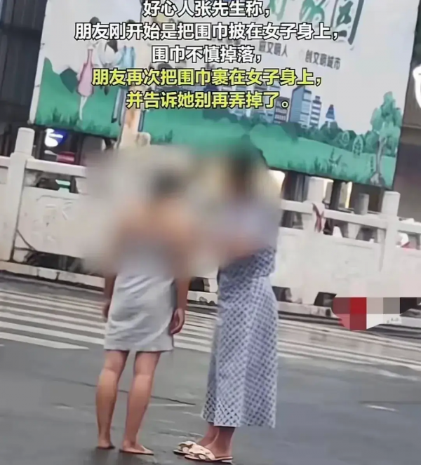 由于张先生女朋友想赶紧为女孩遮住身体,慌慌忙忙中给围好的大毛巾没一会就掉了,于是张先生女朋友赶紧又上前细心的给又围了一次,并温柔的告诉她,一定裹好,别在让掉了,看到这一幕时,那些看热闹的群众也不好意思了拍了,纷纷离开了!