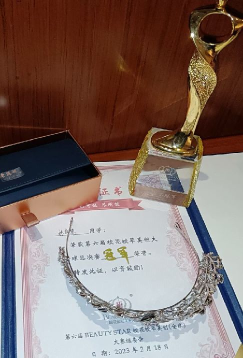 林育慧获得第六届BEAUTY STAR 校花校草美创大赛获得总冠军的荣誉证书