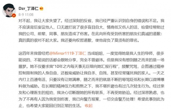 直到2025年11月19日,丁泽仁26岁生日当天,千字长文揭开的真相令人脊背发凉。他坦言2022年的塌房是郝某精心策划,出轨证据、手写信全是被威胁诱导所写;六年间,他必须秒回消息,晚回12分钟就遭78条辱骂语音轰炸,行踪、接触的人都要逐一汇报;郝某甚至获取其家人信息,一天打百个骚扰电话、上门堵人,逼得他全家连夜搬家。更离谱的是,20岁生日时,郝某竟送给他一张结扎手术预约单,称"做了手术就永远属于她",绝望之下他吞服半瓶安眠药,幸被室友救下;饭局上一句"姐",换来红酒杯被砸,还被逼写下"只爱唯一的姐"的保证书。