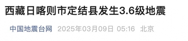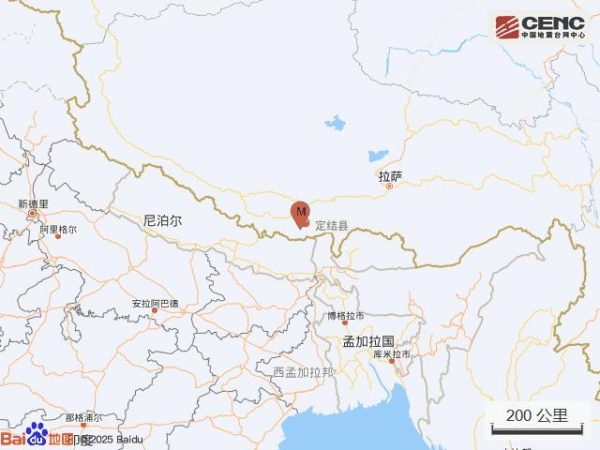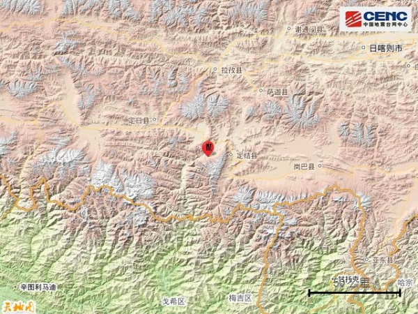 西藏日喀则市定结县发生3.6级地震
