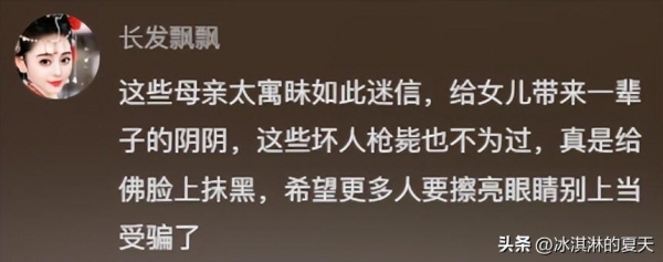也有网友说:受害的3个未成年真可怜,明明还处在一个不谙世事的年纪,偏偏被家人带到寺院,父母的愚昧迷信,给女儿带来了一辈子的阴影,真的是给他们自己心目中的信仰抹黑!