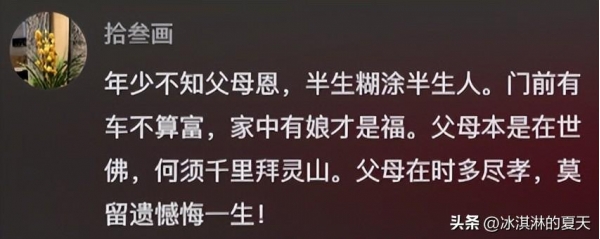 有网友表示:父母才最应该是每个人心目中最大的那一尊佛,可以有信仰,但是不要盲目迷信!父母本是在世佛,何须千里拜灵山。