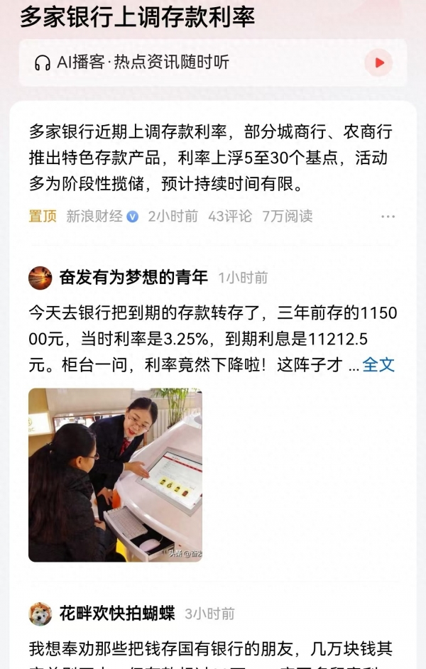 最近存款市场各类消息不断,而且有时候还是自相矛盾的。有报道说从1月中下旬起存款利率逆势在上调,不少银行推出了利率上调后的新定期存款产品,有银行也在营销大额存单产品,难道2026年存款利率会止跌企稳,进入到上升通道吗?