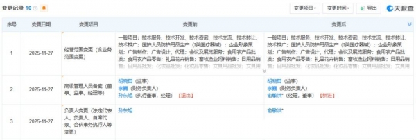 此前,据财联社12月1日消息,天眼查数据显示,近日,东方甄选(北京)科技有限公司发生工商变更,孙东旭卸任法定代表人、经理、执行董事职务,由俞敏洪接任。