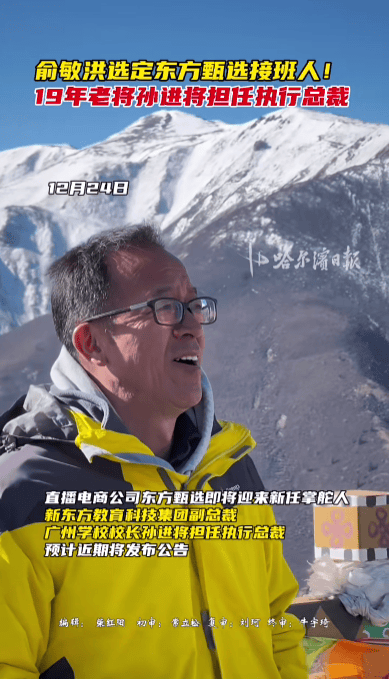 俞敏洪选定东方甄选接班人,19年老将孙进将担任执行总裁,东方甄选确认:消息属实