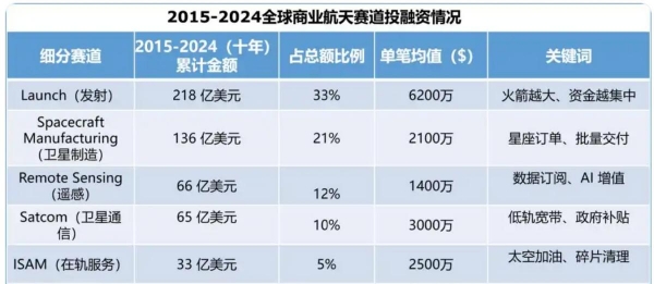 以过去10年全球的投融资情况来看,上游目前占据了核心的产业地位。总计650亿美元的融资额中,一半以上集中在上游产业,伴随着规模化程度的加深和整个卫星网络组网的进程加速,中下游产业的红利周期也有望到来。