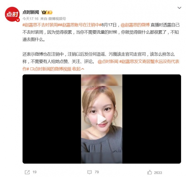 "当你不需要流量的时候,就感觉做什么都很疲惫。"--赵露思在8月17日的直播中,用这句话解释了自己不去时装周的决定,却意外掀起了一场关于"演员该不该卷流量"的舆论风暴。