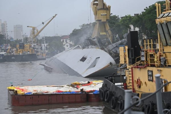 这次到底是怎么回事?初步判断说是救火的时候用水太多,导致舰体重心偏移。听起来像是在说,救火救得太起劲反而把船给救翻了?这要是真的,那可真是让人哭笑不得。