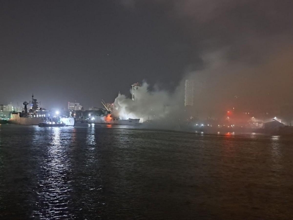 事情是这样的,7月21日,这艘舰上突然起火了,而且是在最要命的指挥舰桥附近。火势迅速蔓延,整个舰桥和动力舱都被烧得一塌糊涂。到了22日上午,大伙儿好不容易控制住了火势,大家都松了一口气。谁知道好戏还在后头呢!