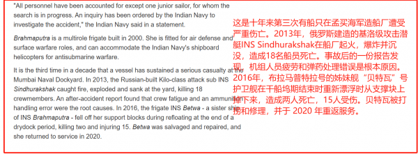 要说这个孟买造船厂,可真是"名声在外"啊。2013年8月14日,一艘叫"辛杜拉克沙克"的潜艇在这儿直接炸沉了。三年后的2016年12月5日,又是"贝特瓦"号在这儿撞沉。这回轮到"布拉玛普特拉"号,简直是应了那句老话:事不过三。