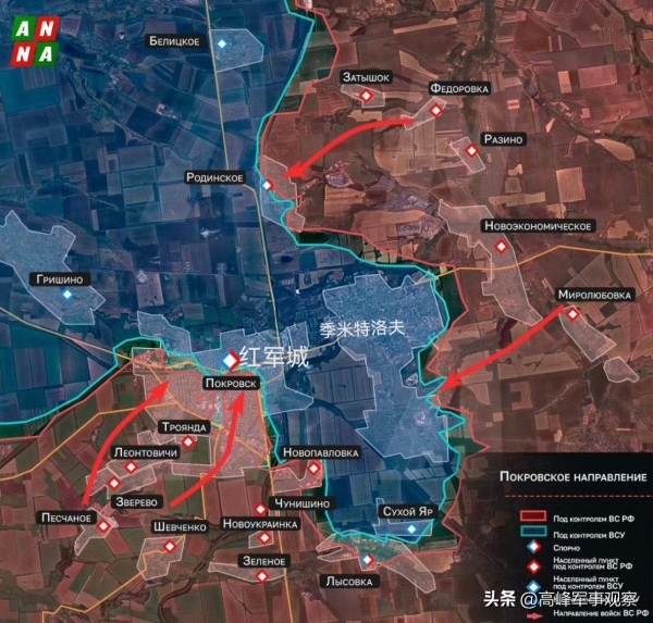 红军城包围圈的乌军也不傻。在季米特洛夫,乌军开始从城镇撤退,同时收缩在市区南部保持防御。在红军村,乌军也开始收缩撤退,但速度没这么快。他们实际上失去这座城市一半的控制权了,而俄军继续巩固铁路线以南的被放弃阵地。很显然,红军城包围圈内的乌军残余部队都在向中心收缩,或集中力量向西突围。不过,时间不等人,等俄军拿下罗金西克,乌军就会彻底突围的机会了。
