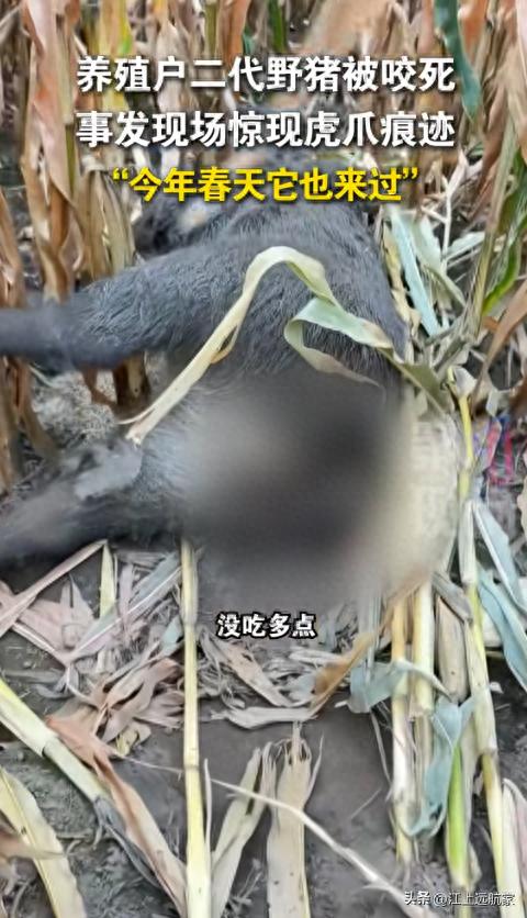 据农户介绍,被咬死的一头野猪,只有屁股被吃掉了,看样猛兽也不是很饥饿。