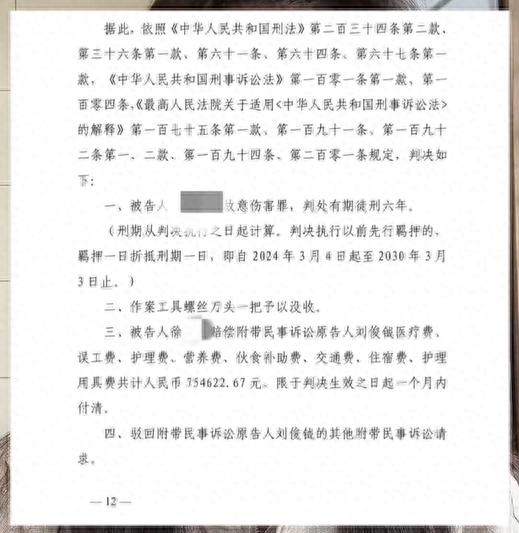 2025年3月27日,刘俊钺的姐姐发布视频称,伤人者徐某因故意伤害罪被判处有期徒刑6年,赔偿75万元。其称,判决生效后对方并未没有执行,逃避赔偿。