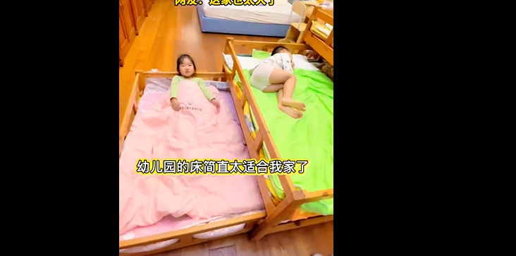 女子表示,家里孩子多,幼儿园的床简直太适合她们家了。