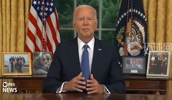 【环球网报道 记者 冬瓜侠】综合美国有线电视新闻网(CNN)、英国《卫报》、英国天空新闻网报道,美国总统拜登于当地时间24日晚8时许在白宫椭圆形办公室发表全国讲话,回应退出竞选连任。在长约11分钟的讲话中,他呼吁美国团结,称这个国家正处于"转折点"。此外,拜登还表态将推动对美国最高法院进行改革。