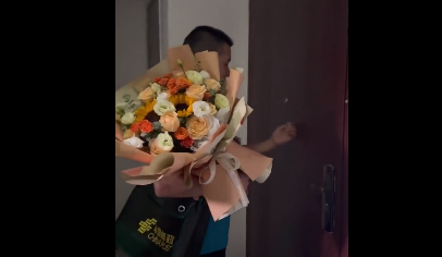 大哥还挺有仪式感,连鲜花一同安排上,是一位细心的好爸爸。