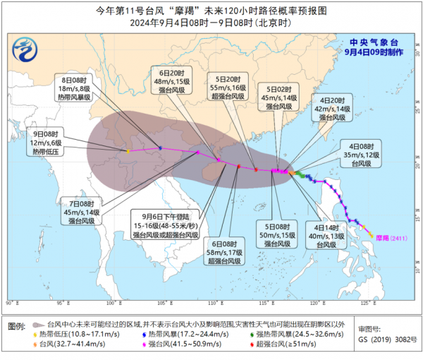 根据气象专家预测,"魔蝎"将以每小时5-10公里的速度向西偏北方向移动,并在接下来的几天内不断增强。预计9月6日白天,台风将在海南岛东部到广东西部一带沿海登陆。登陆时,"魔蝎"的威力将达到顶峰,中心附近最大风力预计将达到14-15级(42-50米/秒),相当于强台风级别。