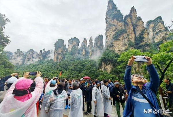 结果现在张家界以前都是金发族,现在呢,都是一家老小全都爬山和欣赏当地的风景和刺激游戏,一度成为了韩国的新流量。