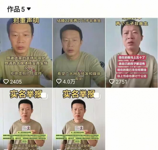 他说,他讲述的全部都是事实,拒绝炒作和波流量,希望大家能够监督,帮助他维权,让前妻和两个情夫付出代价,不能白给他们养儿子吧?