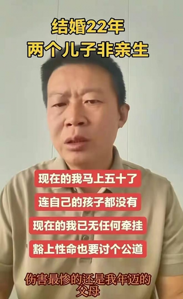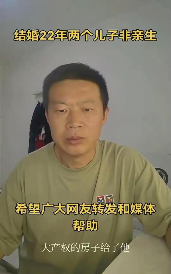8月13日,山东淄博一男子接受采访,说自己结婚22年,一直以为是两个儿子的亲爹,没想到两个儿子的亲爹另有其人。