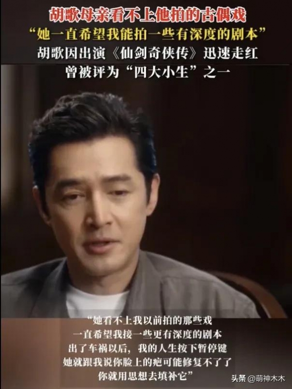 首先还是很佩服胡歌,面对如今内娱环境,依旧愿意对外剖析自己,两个采访节目先后上线,热搜话题一个接着一个来,其中争议最大的,应该就是胡歌聊母亲,相关热搜话题非常不友好,某种程度上有些断章取义,直接就是"胡歌自曝母亲看不上他拍的古偶戏"。
