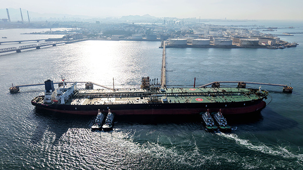 2026年3月19日,山东港口青岛港原油码头,油轮在卸载进口原油。 东方IC