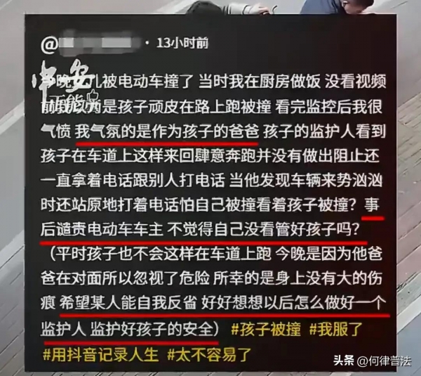 本事件中,妈妈主动反思"如何当好合格监护人",戳中了很多家长的痛点。司法实践中,因监护人失职导致孩子发生交通事故的案例屡见不鲜。