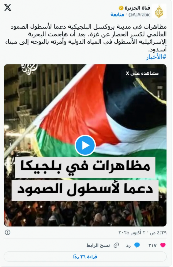 比利时外交大臣马克西姆·普雷沃斯特敦促以色列政府尊重国际法,包括海事法。以色列必须保护"全球坚韧船队"的船只。