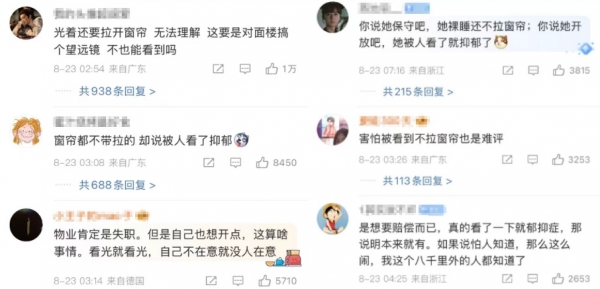 不过这件事倒是给所有人提了个醒,高层住宅绝非绝对私密,在楼间距近且还是落地窗的情况下,即便高层也很容易暴露隐私,你以为没人能看见,殊不知对方楼能看得清清楚楚。