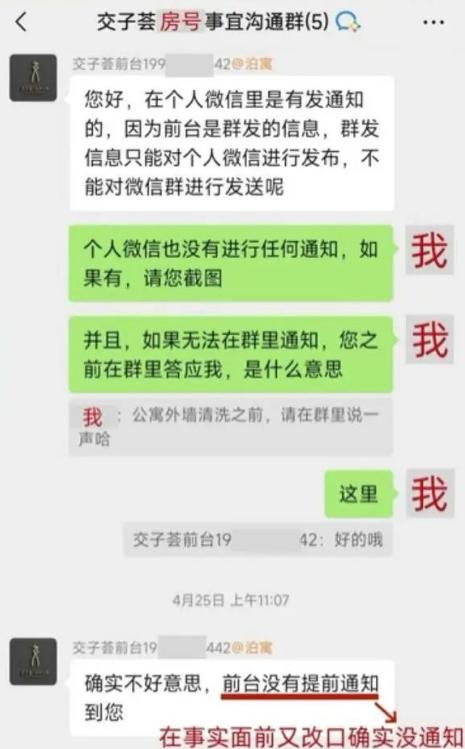 公寓管家、前台分别回复"好的",再次承诺会提前通知。