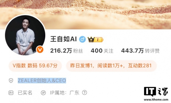 公开信息显示,王自如于 2010 年开启数码测评事业,2012 年创办 ZEALER,同时曾任格力电器渠道改革项目负责人。今年 6 月,王自如曾通过一段 15 分钟的视频,隐晦解释了自己离开格力的原因,并透露了再次创业的方向 --AI 内容,以及用 AI 技术去帮助传统产业加速完成数字化转型。
