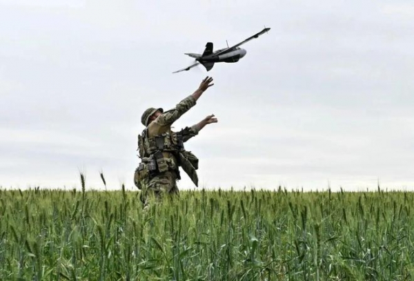 5月26日,一名乌克兰军人在扎波罗热地区放飞无人机