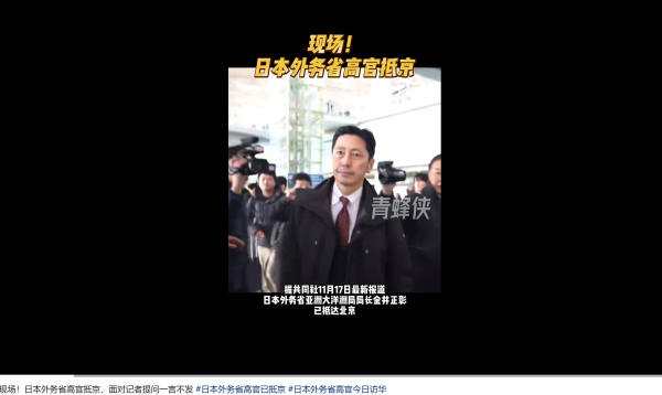 据此前报道,日本政府相关人士透露,日本外务省亚洲大洋洲局局长金井正彰将于17日访问中国,将就高市早苗近日的涉台发言同中方进行会谈。