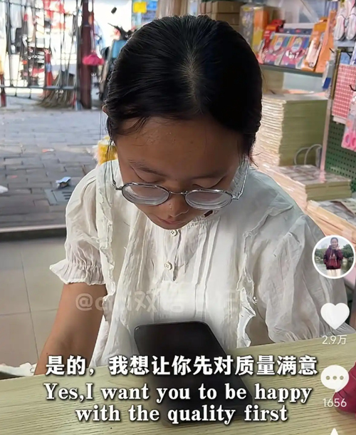10月30日,Cici母亲马绿璇告诉九派新闻,他们一家来自潮汕,女儿学英语已有5年时间,去年8月开始帮她卖货。"我跟丈夫都是初中毕业,以前跟外国人卖货,不会交流,只会在计算机上按数字,损失了很多客户。"马绿璇感慨,哪怕不做相关的生意,她也想让女儿学英语,开阔眼界。