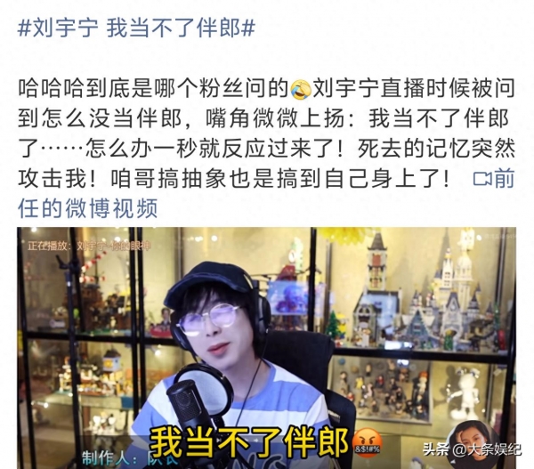 刘宇宁昨晚直播回应网友弹幕评论问他黄子韬伴郎是不是他,他沉默了几秒后说当不了伴郎,说来惭愧。