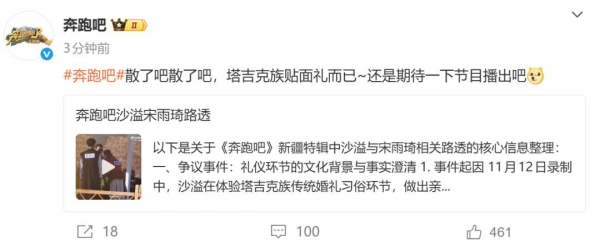 随后,《奔跑吧》节目组官方回应:散了吧散了吧,塔吉克族贴面礼而已~