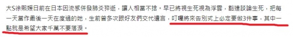 以前好朋友们将大S所说的遗言当成玩笑话,没有想到这么快就迎来了这一天。