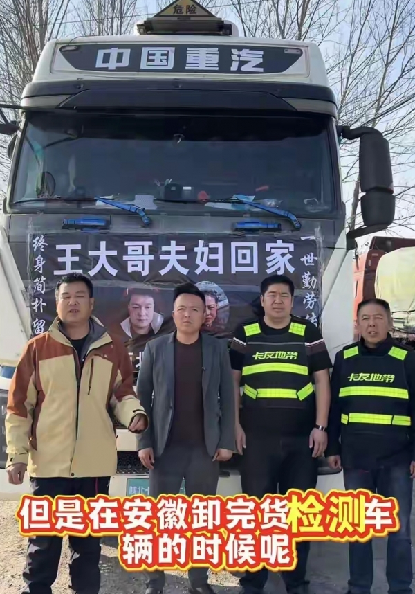 爱心博主"豆哥"团队得知消息后,二话不说组织了四名司机接力,免费把王师傅的卡车从安徽开回陕西老家。