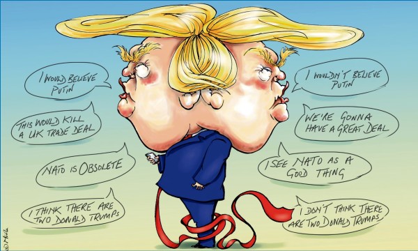美国漫画《特朗普的两张面孔》。图片来源:the Guardian